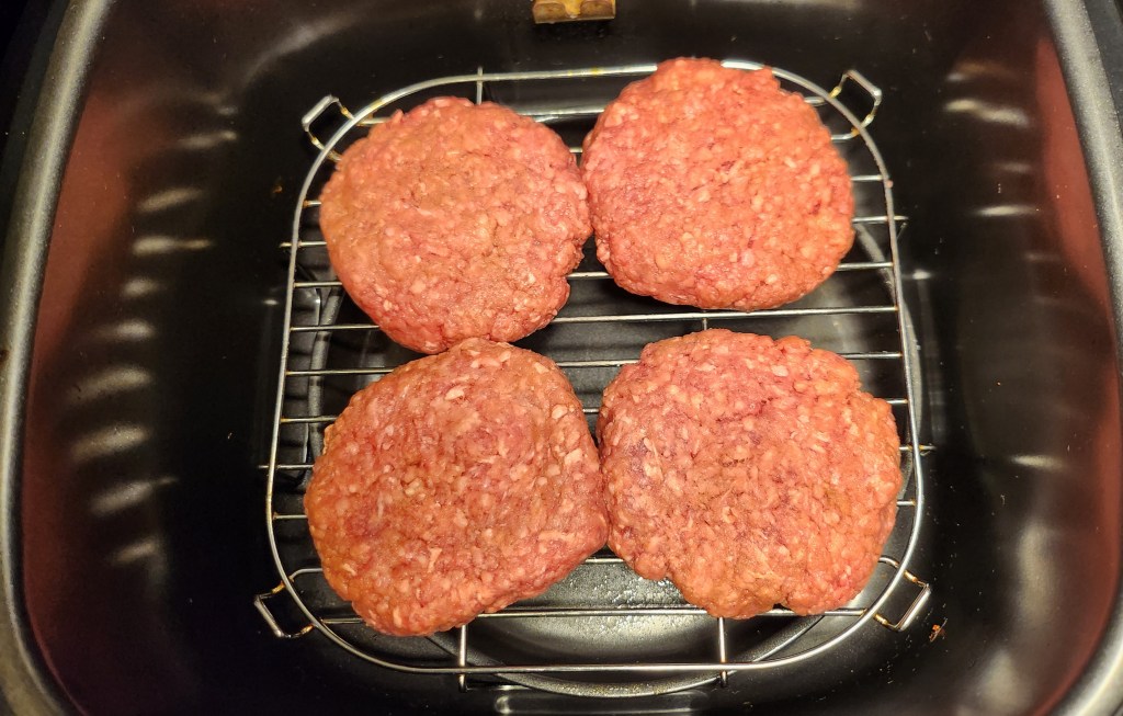 - Cook the Patties: Place the ground beef patties in a single layer in the air fryer basket. Cook for 8-15 minutes, flipping halfway through. Cooking time may vary based on the thickness of the patties and your desired doneness.